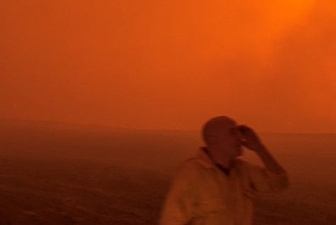 Showing climate change as a visceral condition of the present is undeniable in this project, but when I revisit California on Fire questions fall through my mind. Where is the calm that comes from sitting under a pine tree? Where is the satisfying crunch of brown pine needles underfoot? Where is the wave of ecstasy when the first drop of rain hits the desert floor? Or the awe of the Milky Way glowing through western skies on a moonless night? I’ve got terror covered; where is love, connection, and joy?