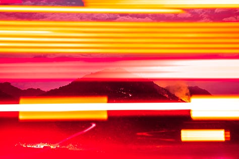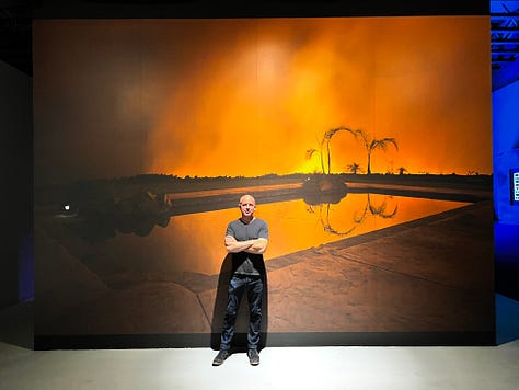 In 2019, I finished California on Fire, a cinematic video art time-lapse project for which I shot nearly half a million photographs. Instead of a human protagonist, the main character is the land. I trained as a wildland firefighter and bought used Nomex PPE gear, including the forest green pants, iconic yellow shirt, matching hard hat, boots with melt-proof vibram soles, gloves, goggles, and a fire shelter created with technology developed by NASA for shuttles re-entering the atmosphere. The project expanded to a 15,000-meter towering pyrocumulus cloud spanning more than a decade, during which I raced across the vast length of California chasing down nearly 100 wildfires. I saw tens of thousands of homes burned to the ground, buried people’s dead pets, and talked to countless Californians literally picking through the ashes of their lives. I saw broken hearts and quiet resilience in equal measure. The resulting film took a year to edit and is structured in five chapters based on the grieving process because everyone, including me, seemed to be chaotically bouncing between denial, anger, bargaining, sadness, and acceptance; the stages of grief in superposition.